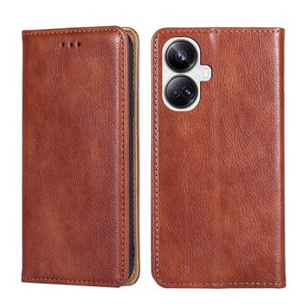 Για Realme C30s Gloss Oil Solid Color μαγνητική δερμάτινη θήκη τηλεφώνου (καφέ)