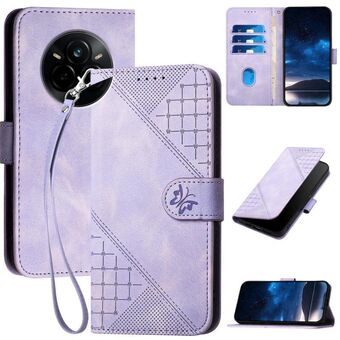 For Realme 14 / P3 5G Global Grid Butterfly Embossed Pattern Leather Phone Case with Lanyard(Light Purple)