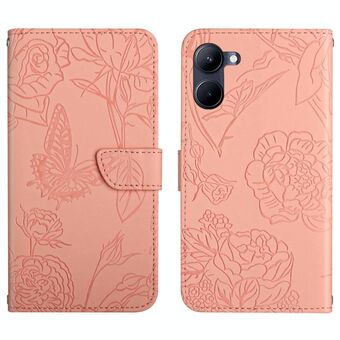Για Realme 10 5G HT03 Skin Feel πεταλούδα ανάγλυφο Flip δέρμα τηλέφωνο υπόθεση (ροζ)