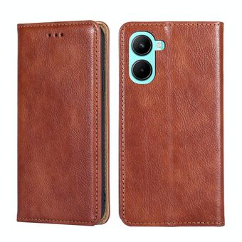 Για Realme C33 4G Gloss Oil Solid Color μαγνητική δερμάτινη θήκη τηλεφώνου (καφέ)