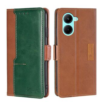 Για Realme C33 4G αντίθεση χρώμα πλευρά πόρπη δερμάτινη θήκη τηλεφώνου υπόθεση (ανοιχτό καφέ + πράσινο)