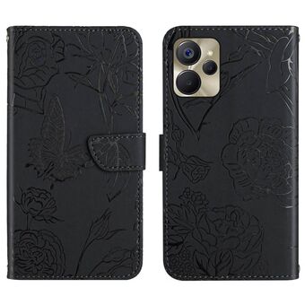 Για Realme 9i 5G HT03 Skin Feel Πεταλούδα ανάγλυφο Flip δέρμα τηλέφωνο υπόθεση (Μαύρο)