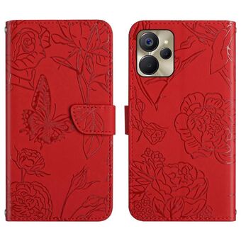 Για Realme 9i 5G HT03 Skin Feel Πεταλούδα ανάγλυφο Flip υπόθεση τηλεφώνου δέρμα (κόκκινο)