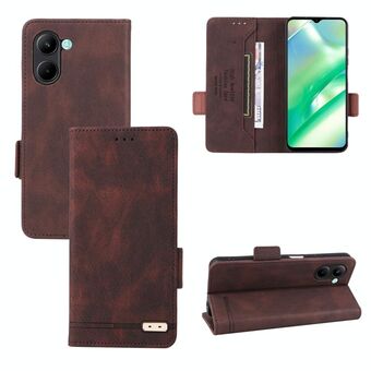Για Realme C33 Μαγνητικό κούμπωμα Δερμάτινη θήκη τηλεφώνου (καφέ)