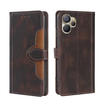 Για Realme C33 4G αντίθεση χρώμα πλευρά πόρπη δερμάτινη θήκη τηλεφώνου (σκούρο καφέ + χρυσό)