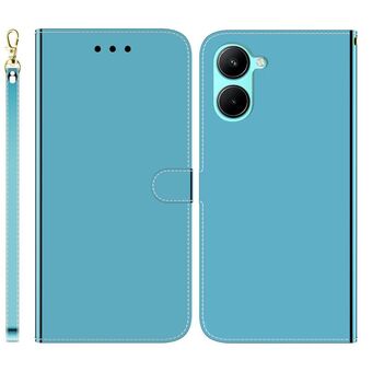 Για Realme C33 Απομιμητικά Mirror Surface Flip δέρμα τηλέφωνο υπόθεση (μπλε)