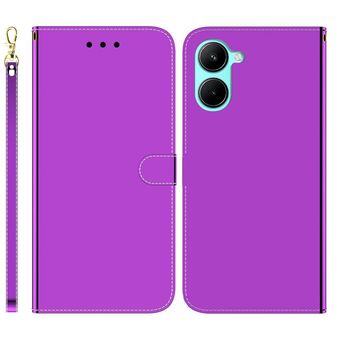 Για Realme C33 Απομιμητικά Mirror Surface Flip δέρμα τηλέφωνο υπόθεση (μωβ)