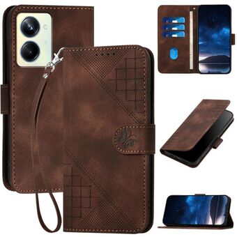 For Realme 10 Pro Grid Butterfly Embossed Pattern Leather Phone Case with Lanyard(Coffee)