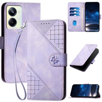 For Realme 10 Pro Grid Butterfly Embossed Pattern Leather Phone Case with Lanyard(Light Purple)