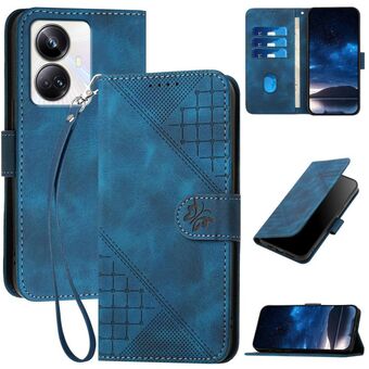 For Realme C20 / C11 2021 / C21 Grid Butterfly Embossed Pattern Leather Phone Case with Lanyard(Dark Blue)
