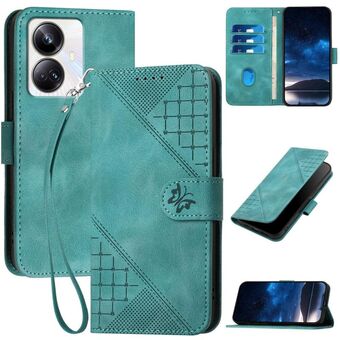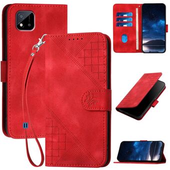 For Realme C20 / C11 2021 / C21 Grid Butterfly Embossed Pattern Leather Phone Case with Lanyard(Red)