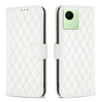 Για Realme C30 Diamond Lattice πορτοφόλι δέρμα Flip υπόθεση τηλεφώνου (λευκό)
