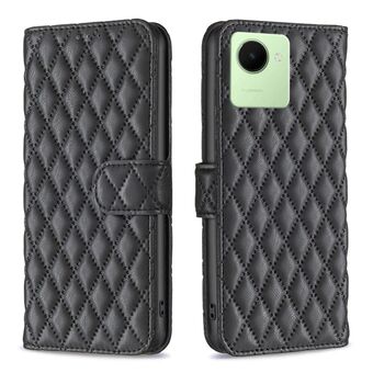 Για Realme C30 Diamond Lattice πορτοφόλι δέρμα Flip υπόθεση τηλεφώνου (μαύρο)