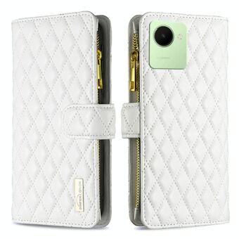 Για Realme C30 Diamond Lattice φερμουάρ πορτοφόλι δέρμα Flip υπόθεση τηλεφώνου (λευκό)