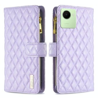 Για Realme C30 Diamond Lattice φερμουάρ πορτοφόλι δέρμα Flip υπόθεση τηλεφώνου (μωβ)