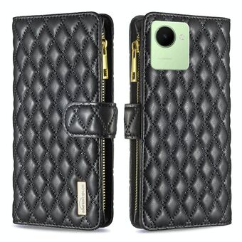 Για Realme C30 Diamond Lattice φερμουάρ πορτοφόλι δέρμα Flip υπόθεση τηλεφώνου (μαύρο)