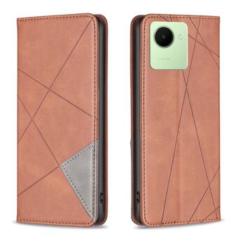 Για το Realme C30 Prismatic Invisible μαγνητική δερμάτινη θήκη τηλεφώνου (καφέ)
