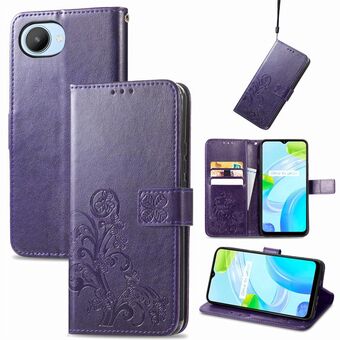 Για Realme C30 Four-φύλλο κούμπωμα ανάγλυφο αγκράφα δερμάτινη θήκη τηλεφώνου (μωβ)