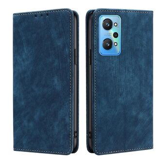 Για Realme 9 Pro/V25/Q5 5G RFID Anti-theft Brush Μαγνητική δερμάτινη θήκη τηλεφώνου (μπλε)