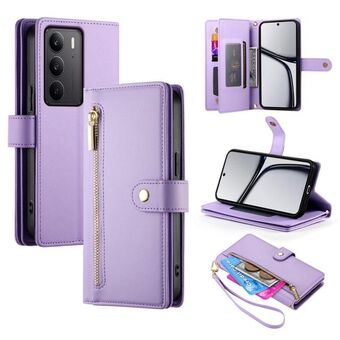 For Realme C75 / Realme 14x Nine Card-slot Zipper Wallet Bag Leather Phone Case(Purple)