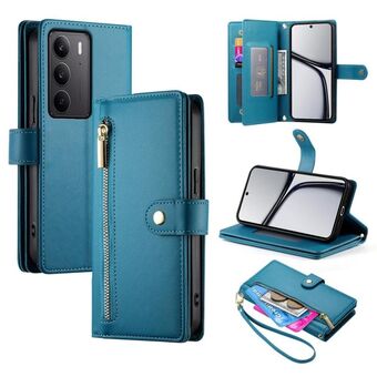 For Realme C75 / Realme 14x Nine Card-slot Zipper Wallet Bag Leather Phone Case(Blue)