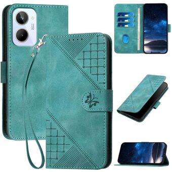 For Realme 10 4G Grid Butterfly Embossed Pattern Leather Phone Case with Lanyard(Coffee)