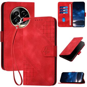 For Realme 13 Pro / 13 Pro+ Global Grid Butterfly Embossed Pattern Leather Phone Case with Lanyard(Red)