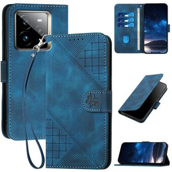 For Realme 13 Pro / 13 Pro+ Global Grid Butterfly Embossed Pattern Leather Phone Case with Lanyard(Light Blue)