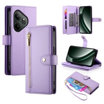 For Realme GT 6 Global Nine Card-slot Zipper Wallet Bag Leather Phone Case(Purple)