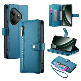 For Realme GT 6 Global Nine Card-slot Zipper Wallet Bag Leather Phone Case(Blue)