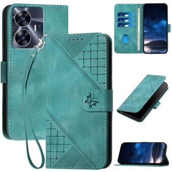 For Realme C55 4G Global Grid Butterfly Embossed Pattern Leather Phone Case with Lanyard(Coffee)