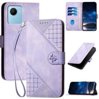 For Realme C30 4G / C30s Grid Butterfly Embossed Pattern Leather Phone Case with Lanyard(Light Purple)