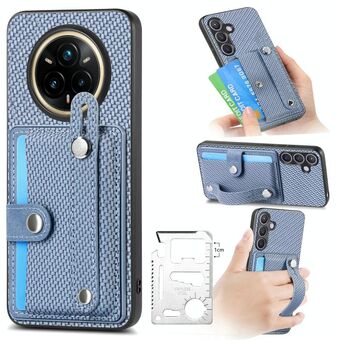For Realme 14 Pro Carbon Fiber Card Bag Fold Stand Phone Case(Blue)