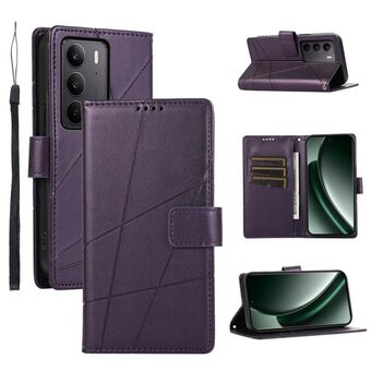 For Realme C75 / Realme 14x PU Genuine Leather Texture Embossed Line Phone Case(Purple)