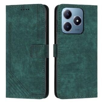 For Realme C65 4G Skin Feel Stripe Pattern Leather Phone Case with Lanyard(Green)