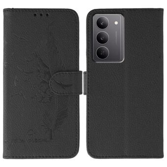 For Realme 14x Feather Pattern Litchi Texture Leather Phone Case(Black)