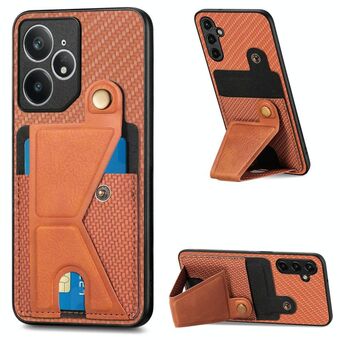 For Realme Neo7 Carbon Fiber Wallet Flip Card K-shaped Holder Phone Case(Brown)