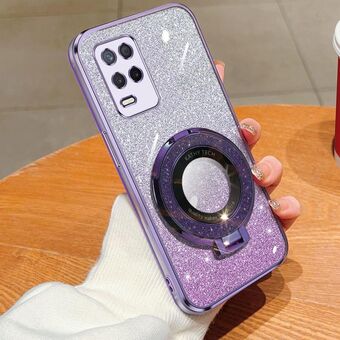 For Realme V13 / 8 5G / Q3i / K9X Plated Gradient Glitter Round Holder TPU Phone Case(Purple)