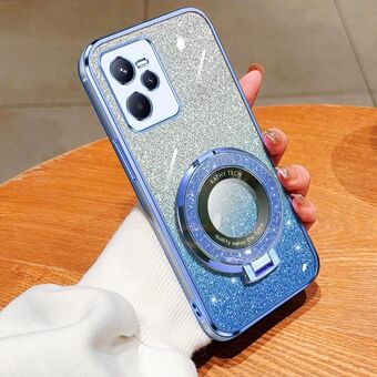 For Realme C35 Plated Gradient Glitter Round Holder TPU Phone Case(Sierra Blue)