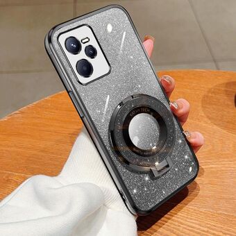 For Realme C35 Plated Gradient Glitter Round Holder TPU Phone Case(Silver)