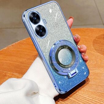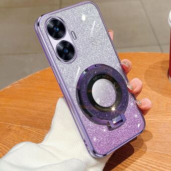 For Realme C55 4G Plated Gradient Glitter Round Holder TPU Phone Case(Purple)