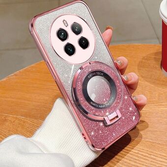 For Realme 12 Pro+ Plated Gradient Glitter Round Holder TPU Phone Case(Pink)