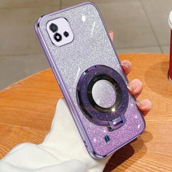 For Realme C20 / C20A / C11 2021 Plated Gradient Glitter Round Holder TPU Phone Case(Purple)