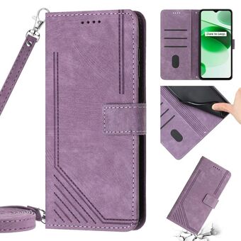 Για το Realme C31 4G δέρμα Feel Stripe μοτίβο δερμάτινη θήκη τηλεφώνου με κορδόνι (μωβ)