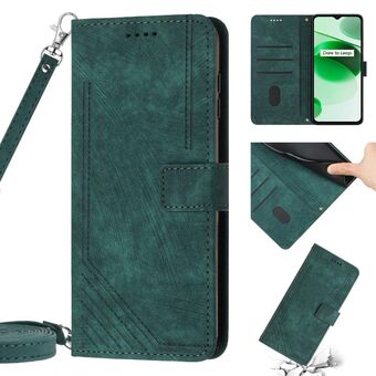Για Realme C31 4G δέρμα αίσθηση λωρίδα μοτίβο δερμάτινη θήκη τηλεφώνου με κορδόνι (πράσινο)