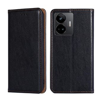Για Realme V30 5G / V30T Gloss Oil Solid Color μαγνητική δερμάτινη θήκη τηλεφώνου (μαύρο)