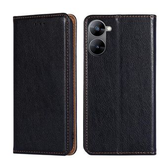 Για Realme C55 4G Gloss Oil Solid Color μαγνητική δερμάτινη θήκη τηλεφώνου (μαύρο)
