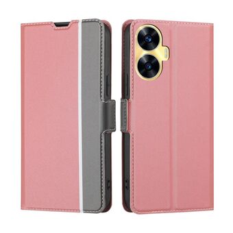 Για το Realme C55 δέρμα αίσθηση καθαρό χρώμα Flip δέρμα τηλέφωνο υπόθεση (ροζ)