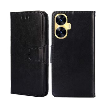 Για Realme C55 4G Crystal Texture Δερμάτινη θήκη τηλεφώνου (Μαύρο)
