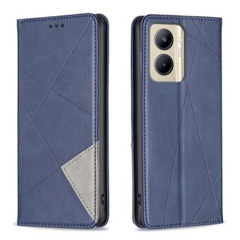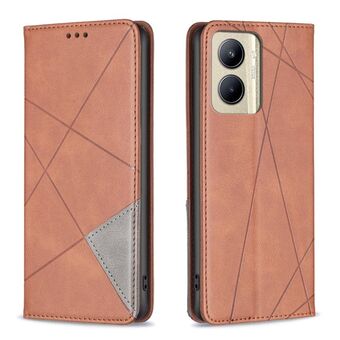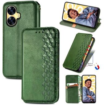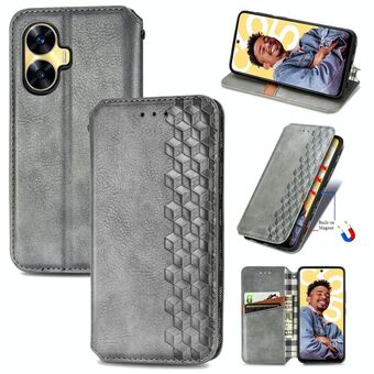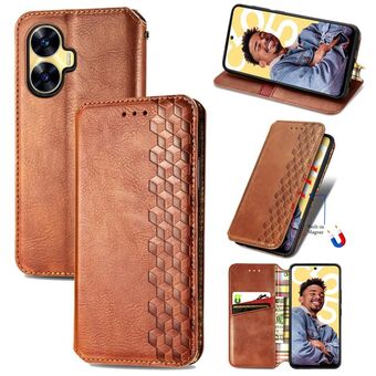 Για Realme C55 Cubic Grid Πιεσμένο μαγνητικό δέρμα τηλέφωνο υπόθεση (καφέ)